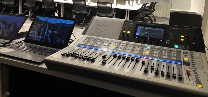 We were contacted to provide Audio Video Support for a high-end meeting. Clients were meeting in-person and some virtually using Zoom. 20+ push-to-talk goose-neck mics were setup for the in-person clients. Cameras were angled in such a way to cover the entire event space for the virtual participants.